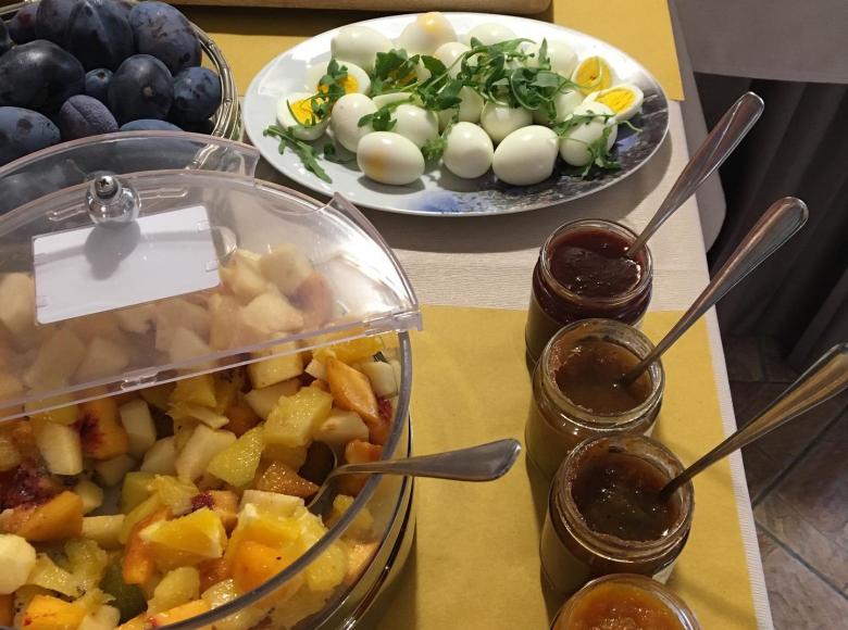 From homemade cake, to pancakes, to brioches, to then taste the cherry, apricot and pumpkin jam, some homemade salami, ham, toast, and seasonal vegetables directly from our garden collected and prepared the same morning.